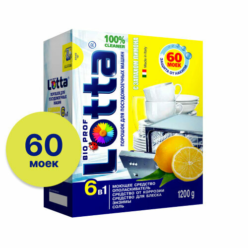 Купить Порошок для посудомоечной машины LOTTA 6 в 1 на 60 моек, 1200 г с ароматом лимона