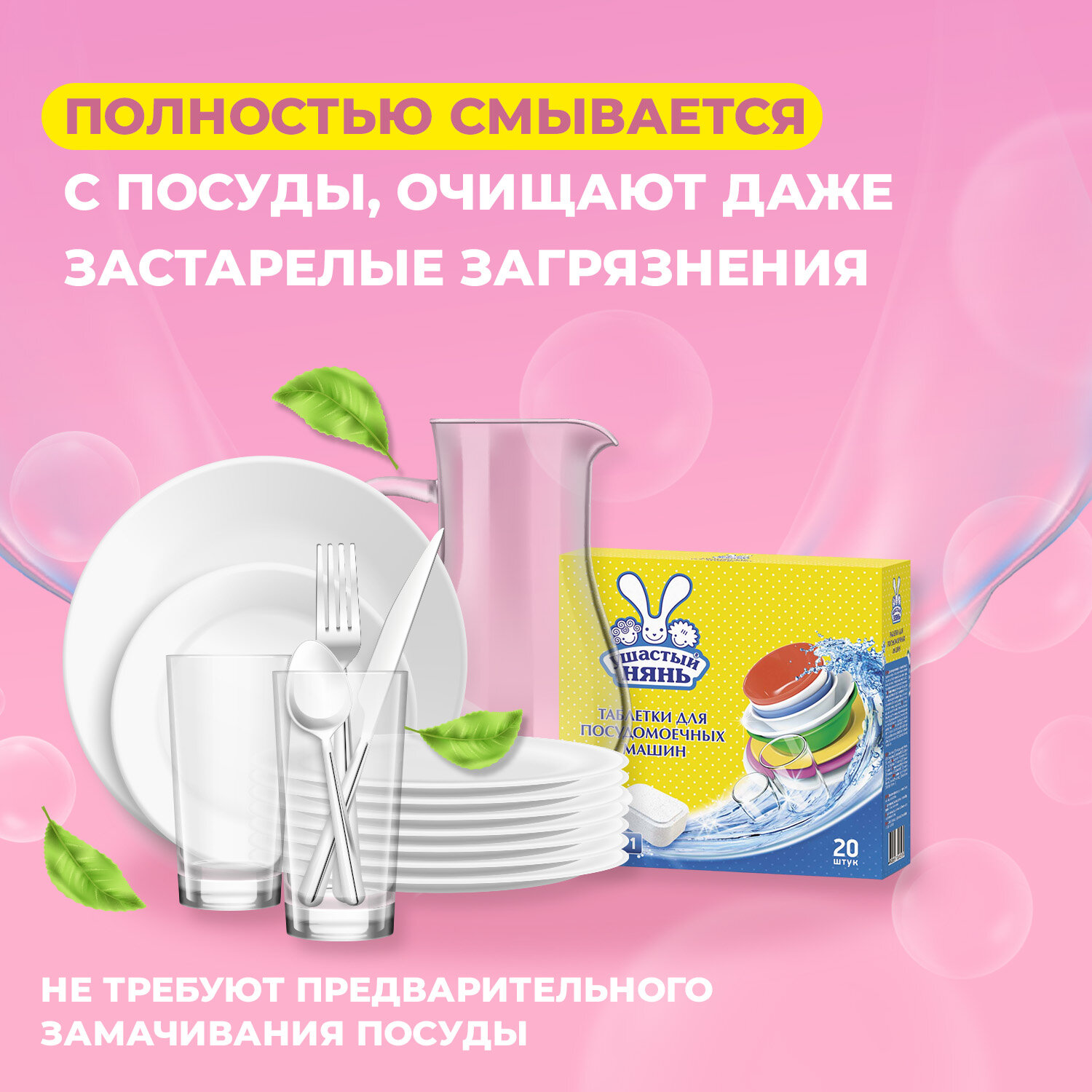 Ушастый Нянь Таблетки для посудомоечной машины, 20 штук в упаковке