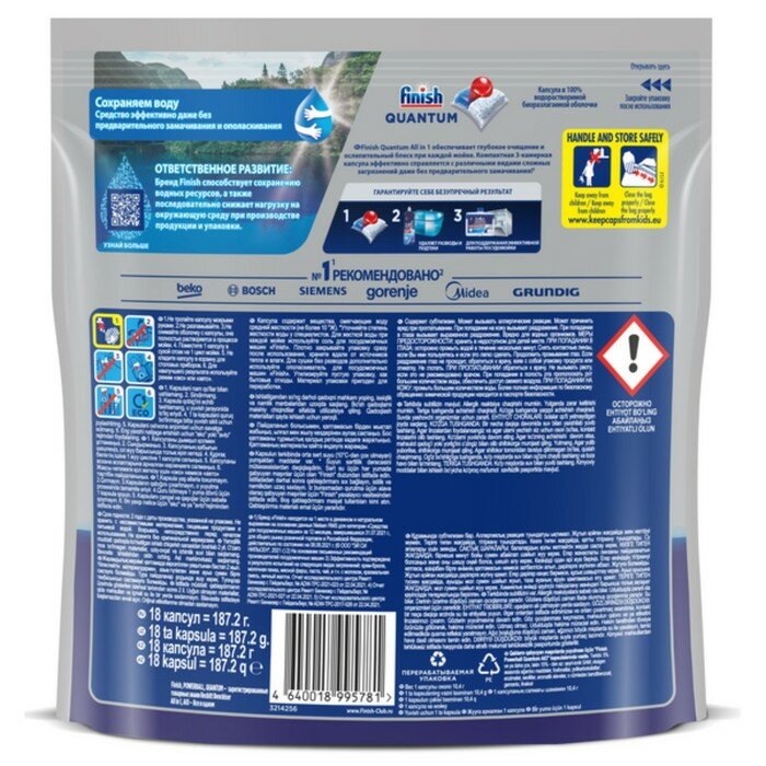 Капсулы для посудомоечных машин Finish Quantum, 18 шт
