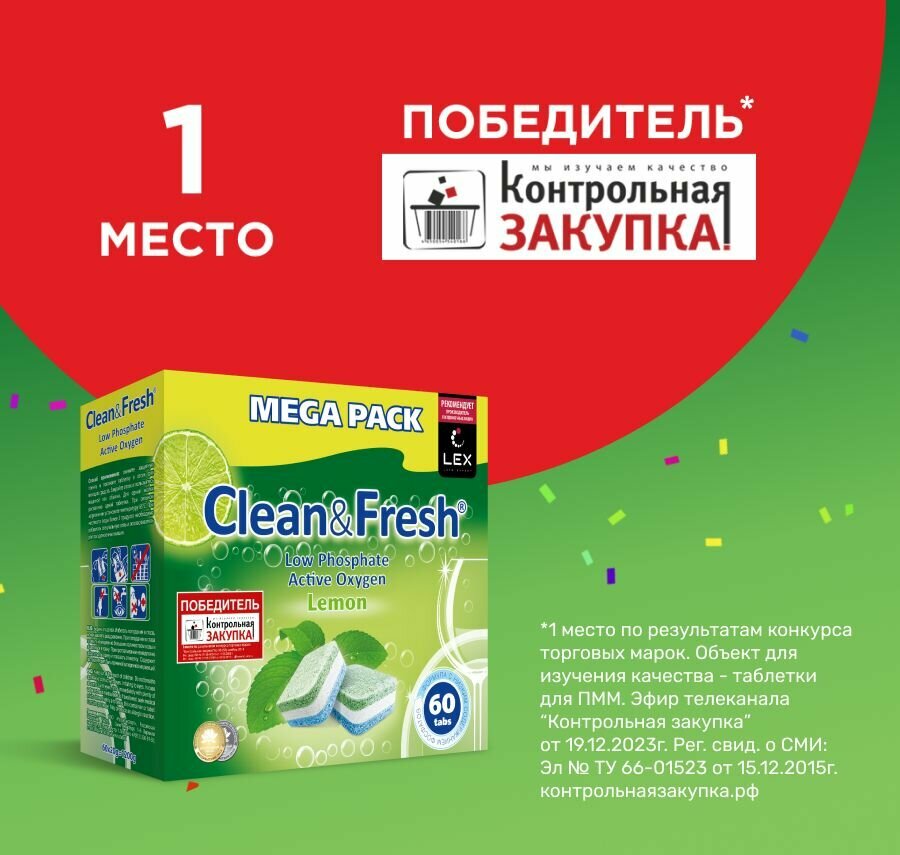 Купить Таблетки для посудомоечной машины "Clean&Fresh" Всё в 1 / 60 шт / капсулы для посудомоечной машины, не растворимая оболочка