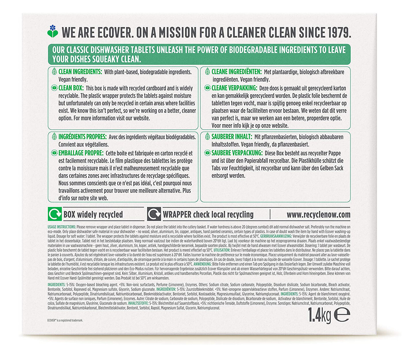 Экологические таблетки Ecover для посудомоечной машины, 70шт.1400г
