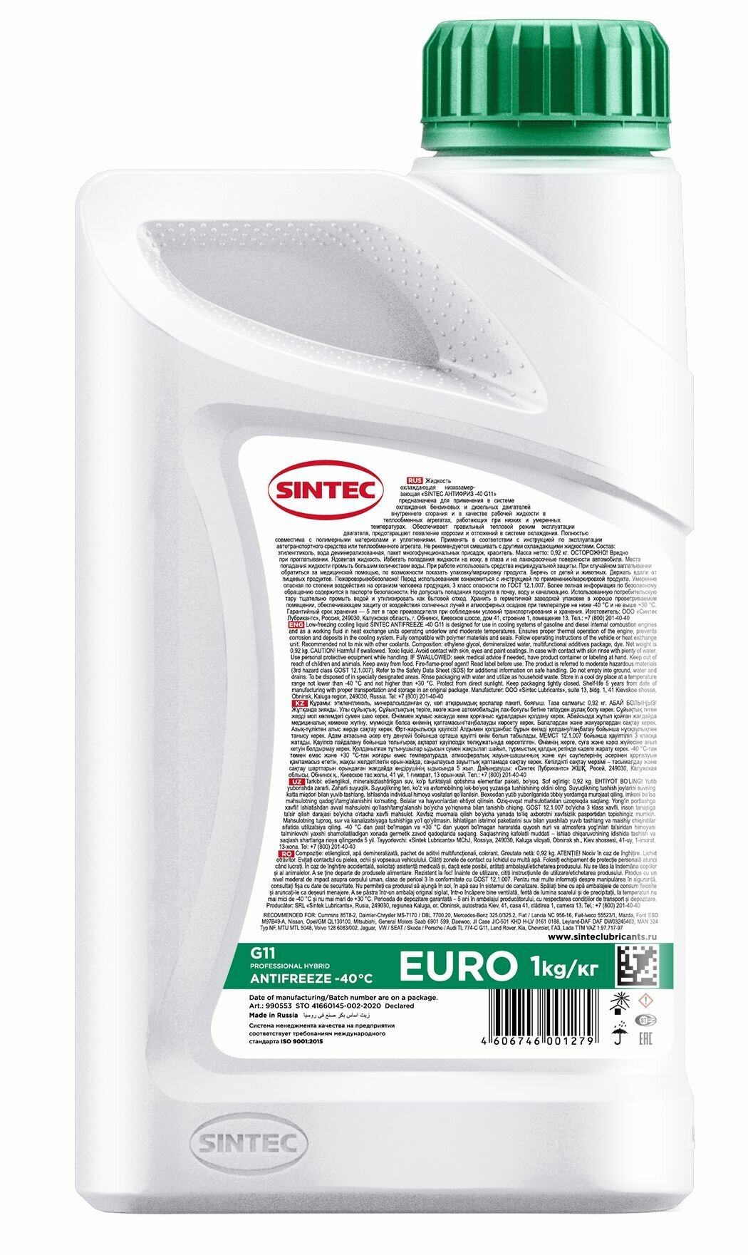 Антифриз зеленый -40C 1кг G11 Euro, 990553, SINTEC