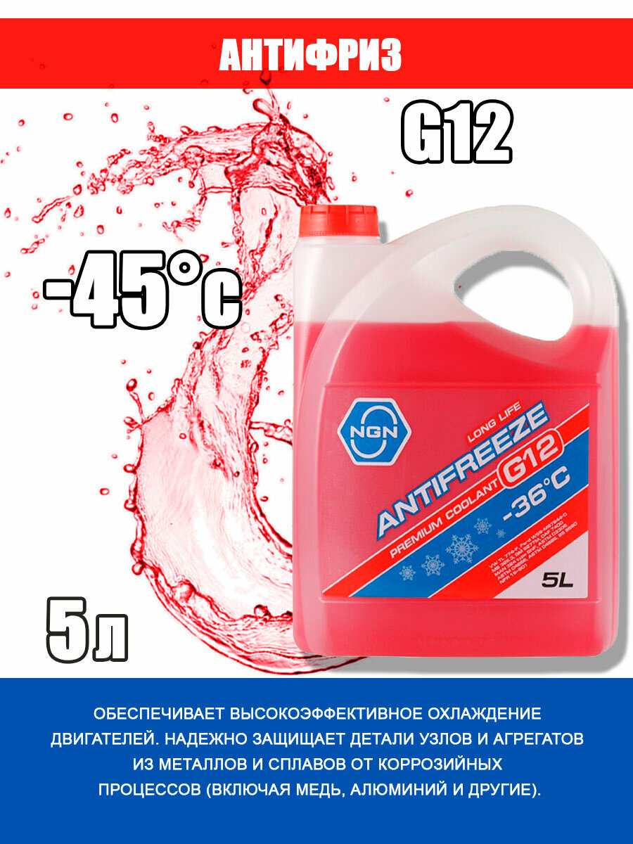 Антифриз, Готовый Раствор G12 -36 Красный 5Л NGN арт. V172485318