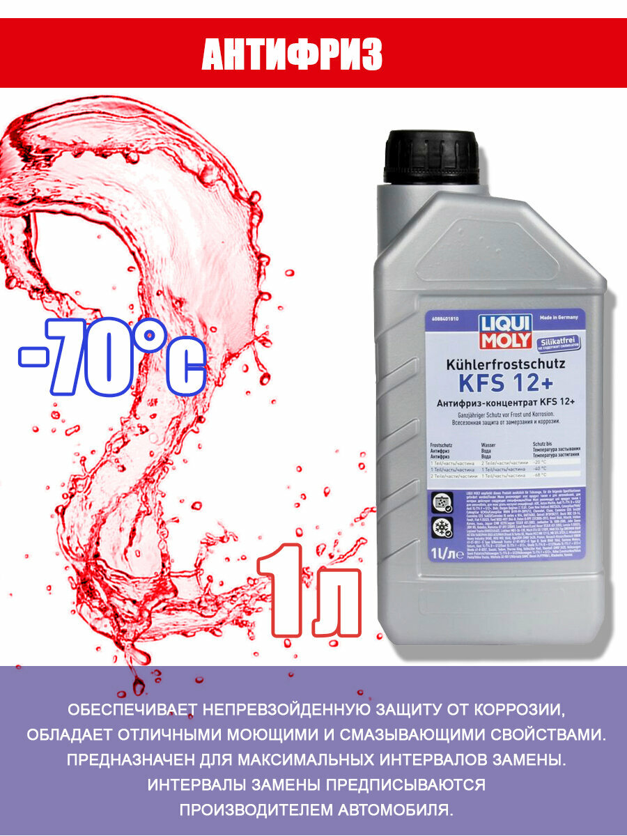 liquimoly kuhlerfrostschutz kfs 2001 plus g12 1l_антифриз! красн.конц. 1:1 -40°c смеш-ся с g11/g12