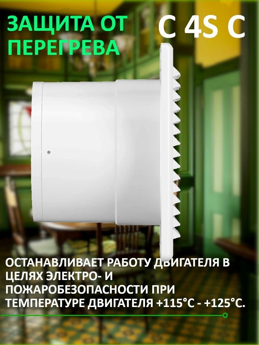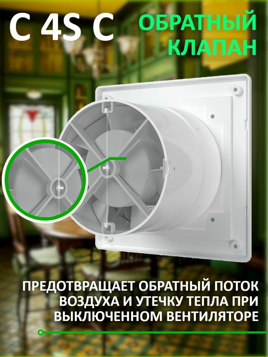 Вентилятор вытяжной AURAMAX C 4S C, D 100 мм, с обратным клапаном, с антимоскитной сеткой, белый