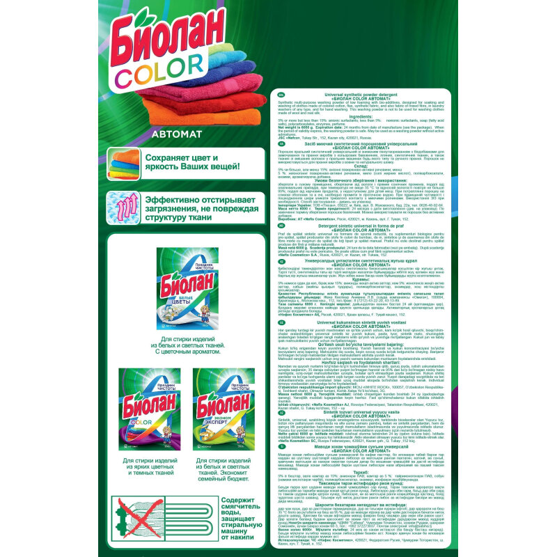 Стиральный порошок-автомат 6 кг, БИОЛАН Color (Нэфис Косметикс), 714-4, 108-4