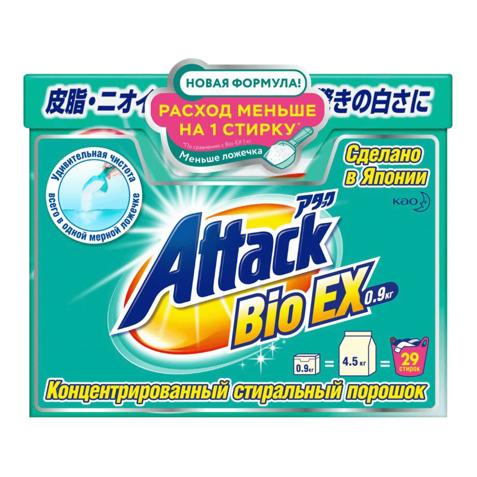 Концентрированный универсальный стиральный порошок Attack Bio EX, 0.9 кг