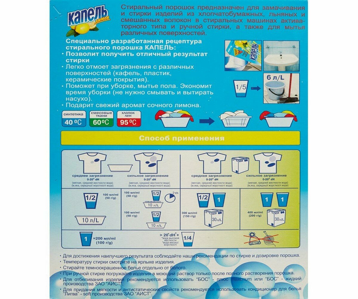 Купить Аист Стиральный порошок Капель Аист Лимон 400 гр