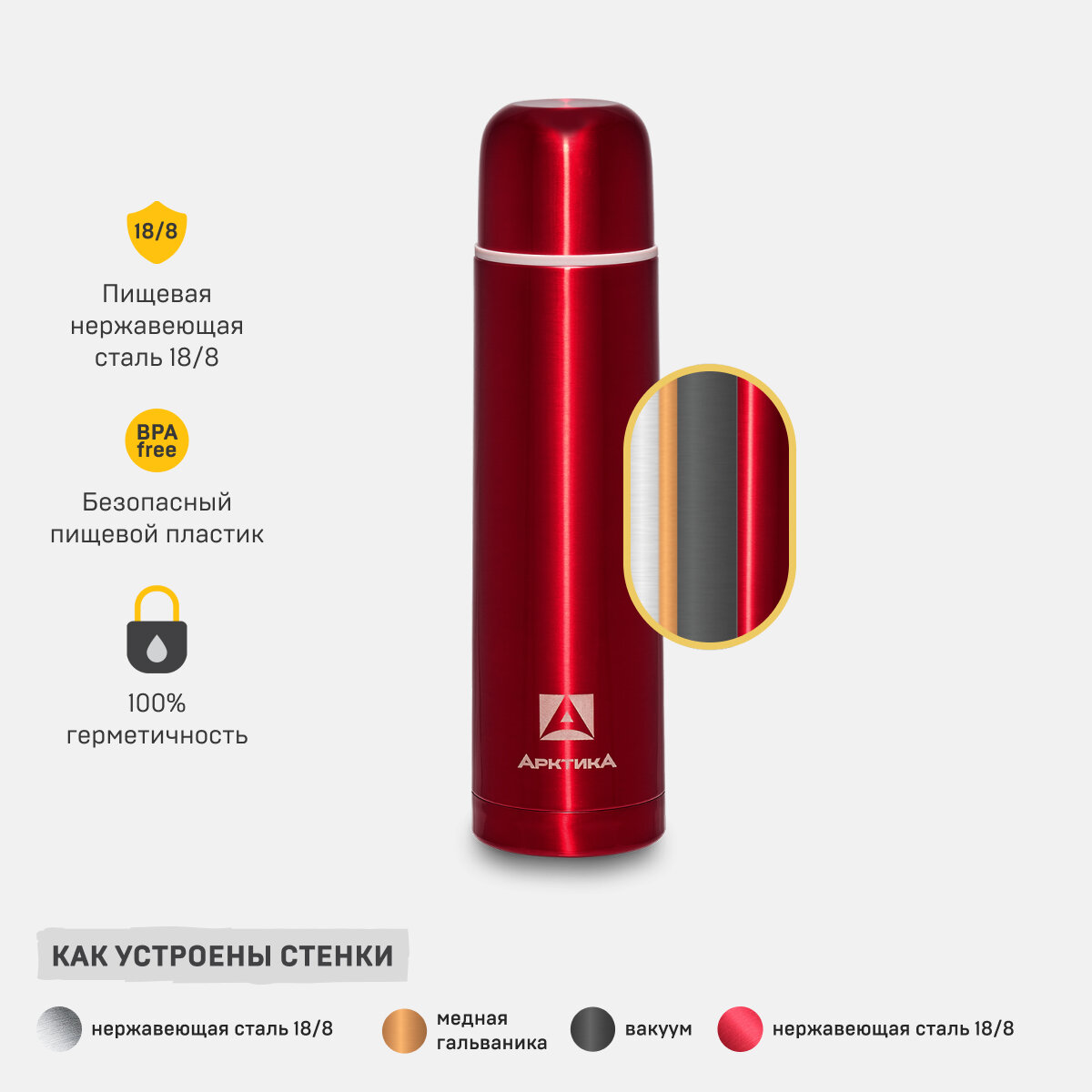 Термос бытовой вакуумный для напитков Арктика 1000 мл, 102-1000 - Красный