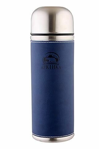 108-1000-кожа Синий Термостм "Арктика", 1000 мл, в кожаной оплетке, Синий