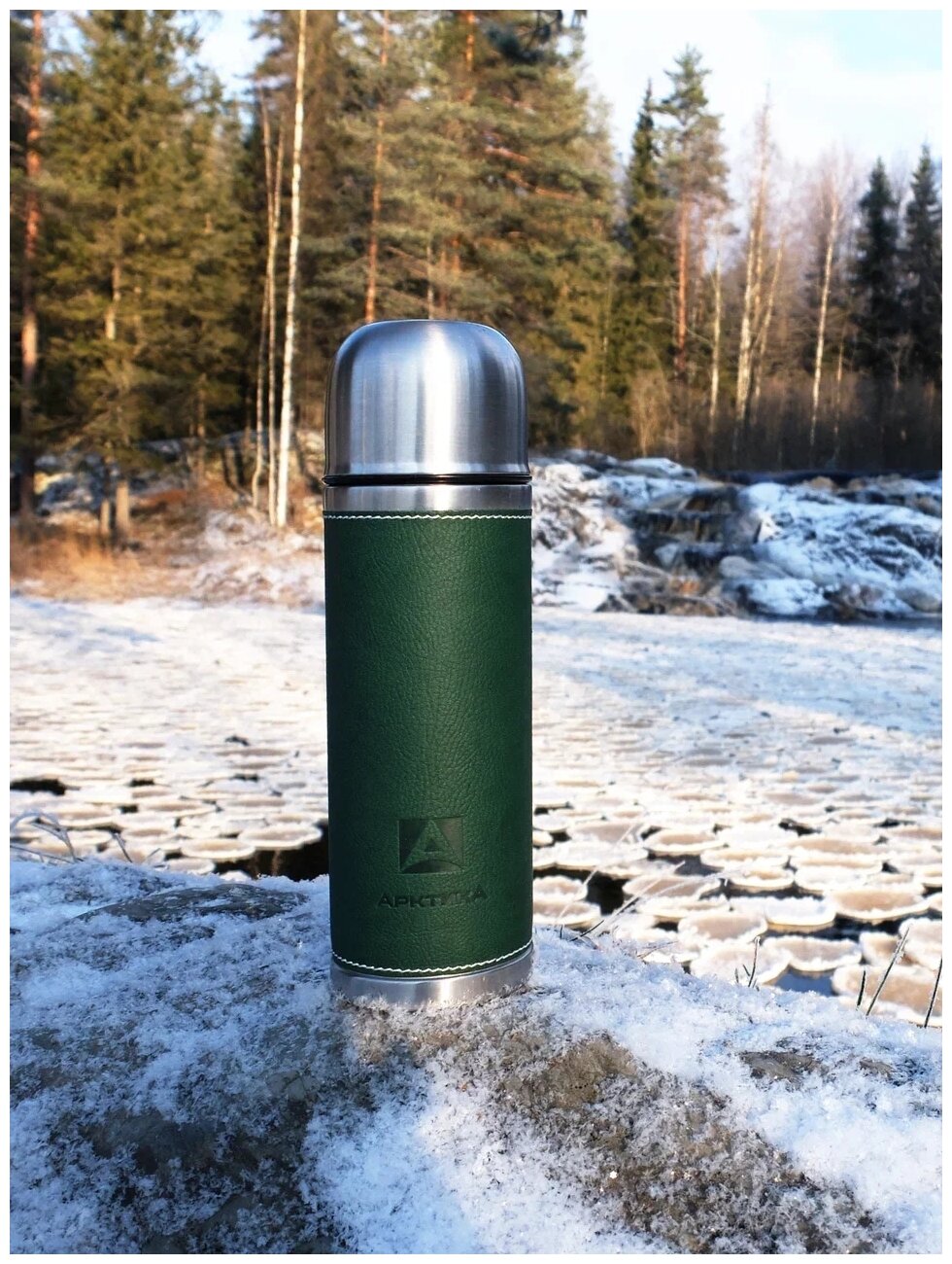 Термос Арктика 108-1000-GN с узким горлом в кожаной оплетке зеленый [1 л. / ]