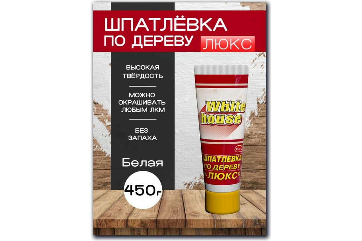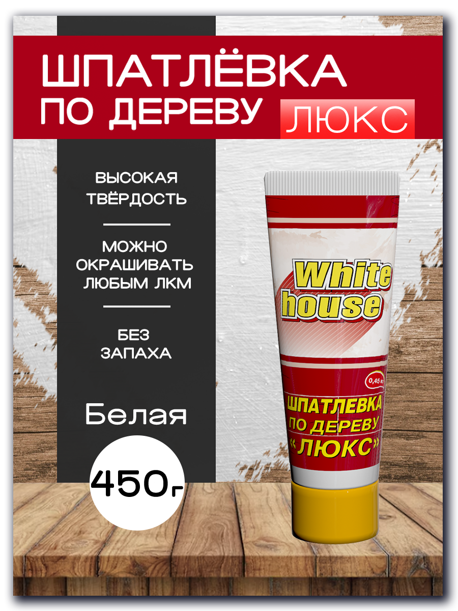 Шпатлевка по Дереву White House 0.45кг Белый, Малоусадочная, Окрашиваемая.