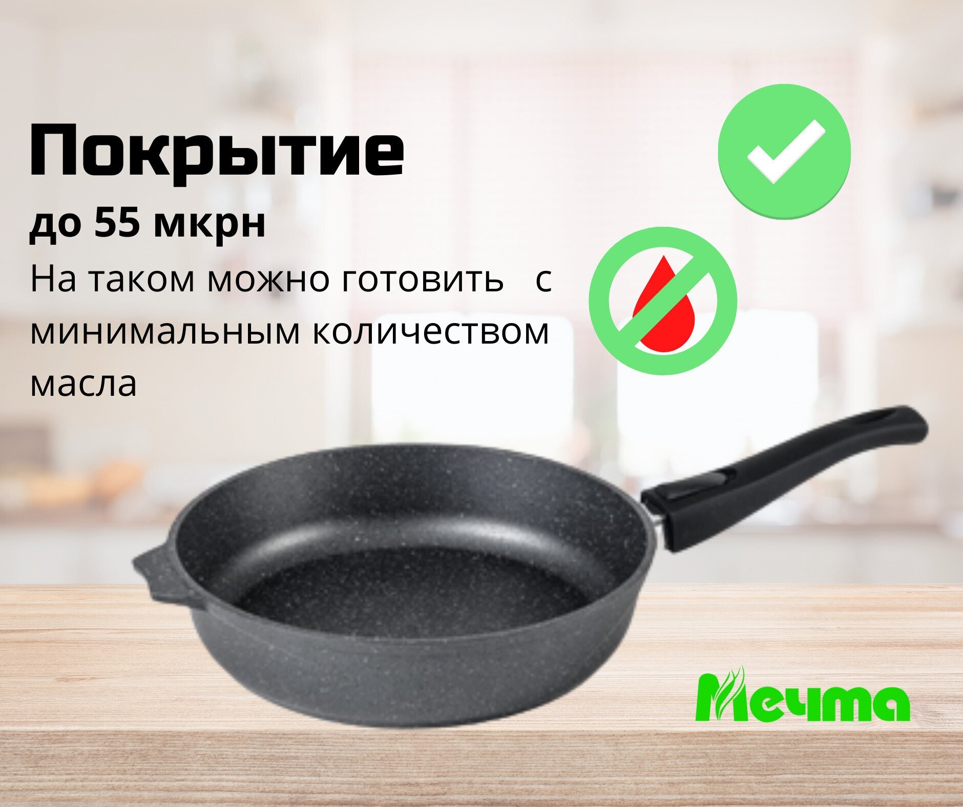 Сковорода Мечта 28 см Гранит с антипригарным покрытием с несъемной ручкой, НЕ индукционная