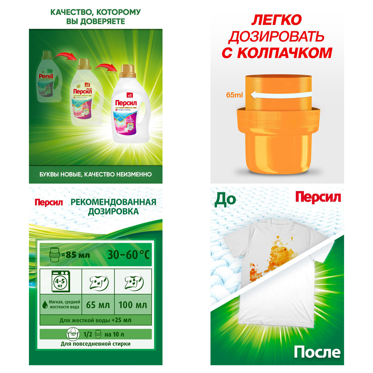 | Минусы: | вероятно качество упадет в связи с появлением persil premium в зелёной бутылке |