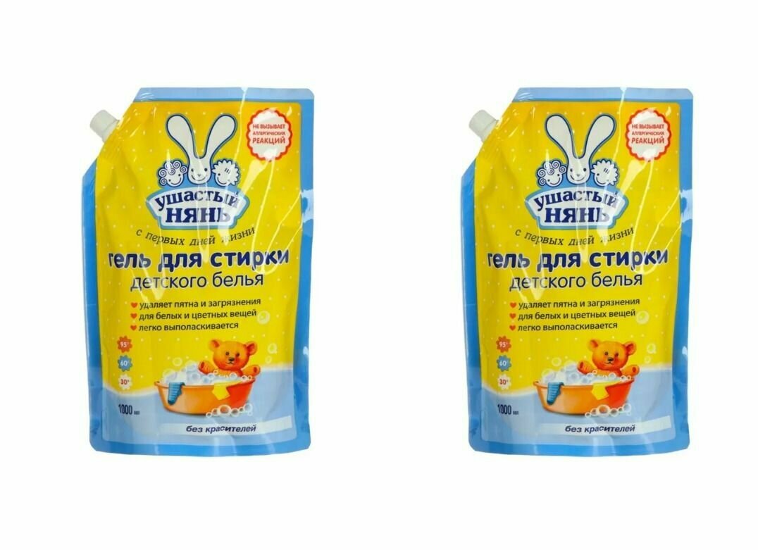 Купить Гель для стирки детского белья, Ушастый нянь, дой-пак, 1 л, 2 шт
