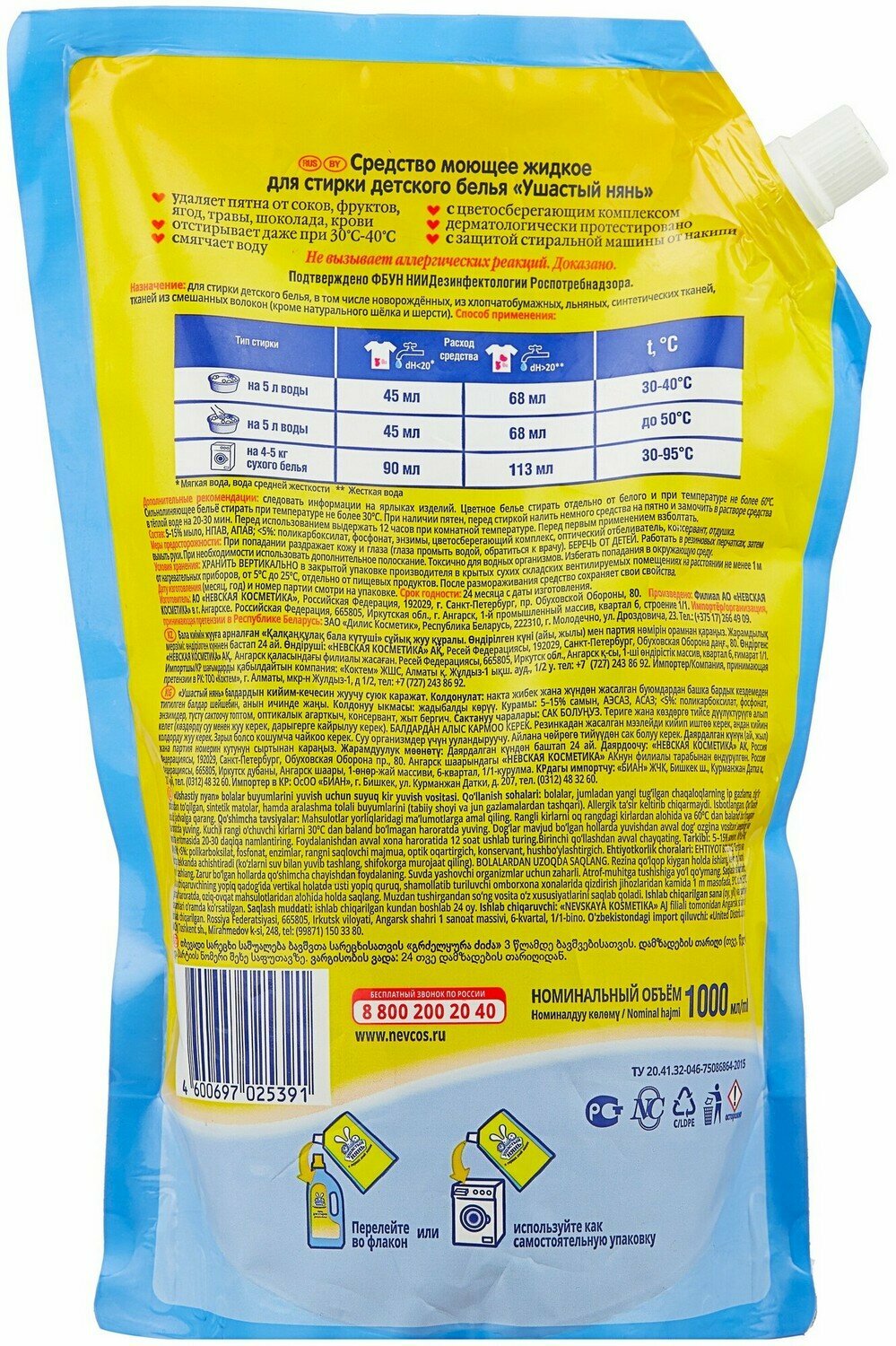 СохранитьГель для стирки детского белья, Ушастый нянь, дой-пак, 1 л, 2 шт интересное: