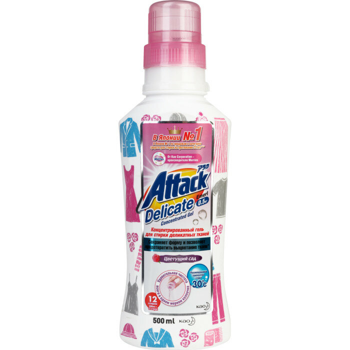 Гель для стирки Kao Attack Delicate Emal для деликатных тканей Цветущий сад, 0.5 л, бутылка