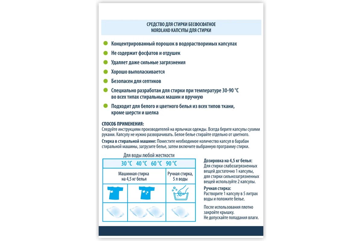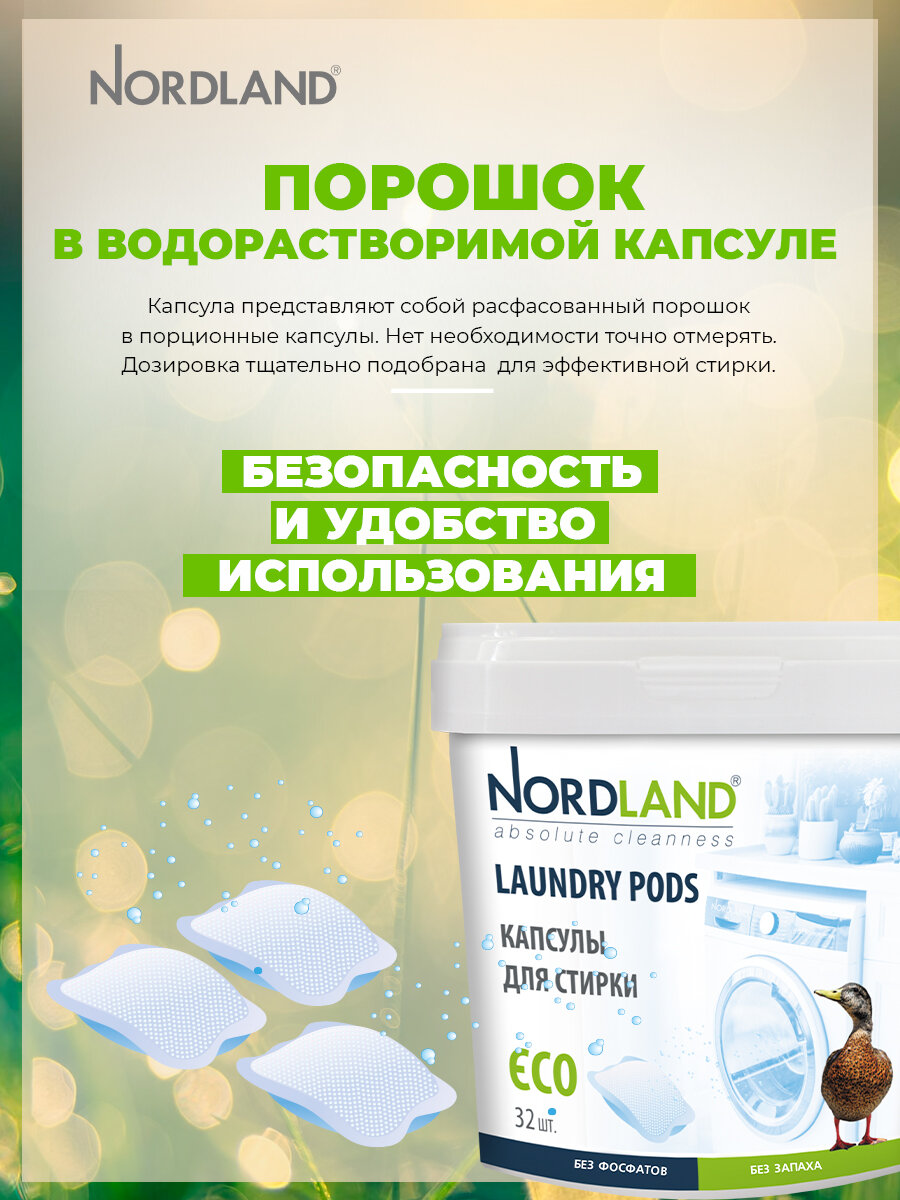 Капсулы для стирки Nordland , бесфосфатные, 32 шт