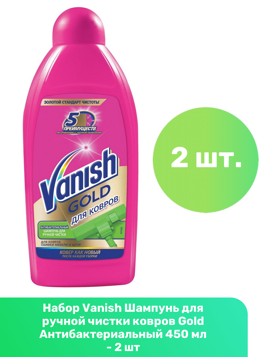 Антибактериальный шампунь для ручной чистки ковров Vanish Gold, 450мл, 2 шт интересное: