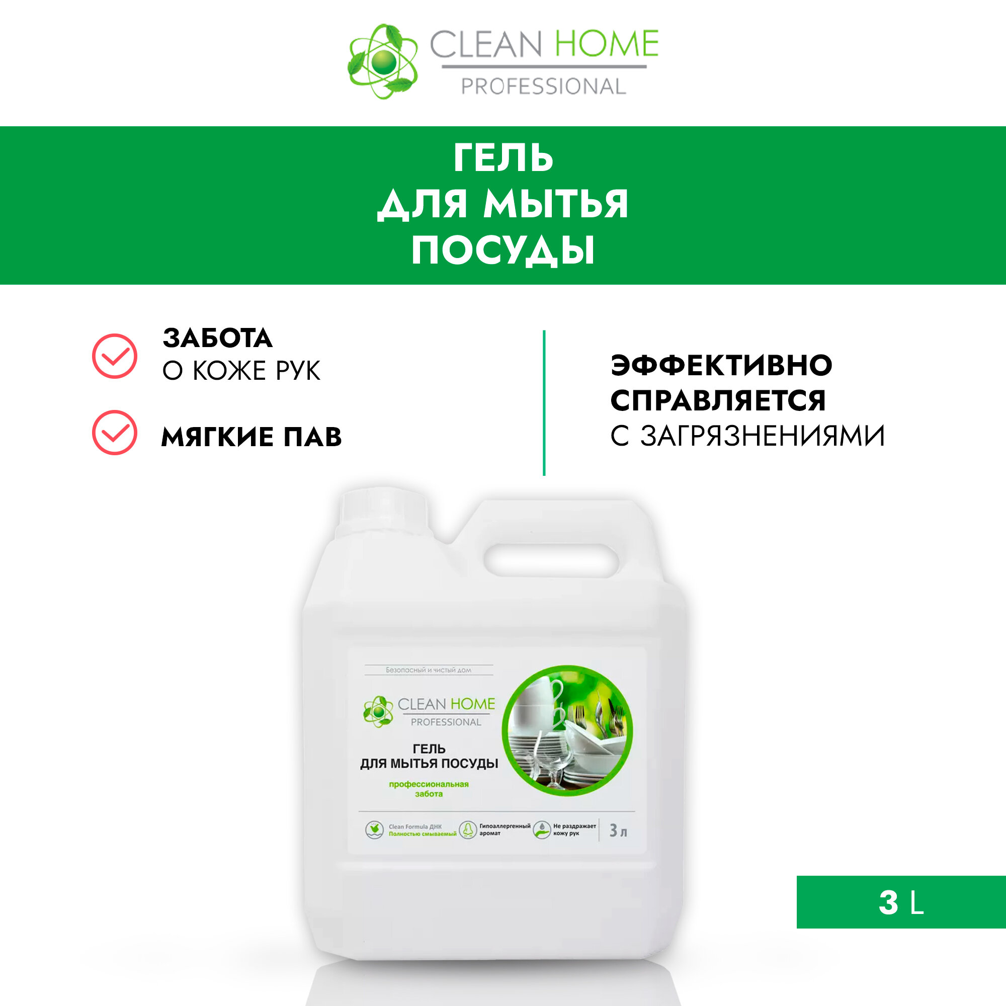 Гель для мытья посуды CLEAN HOME профессиональная забота 3л 4606531206148