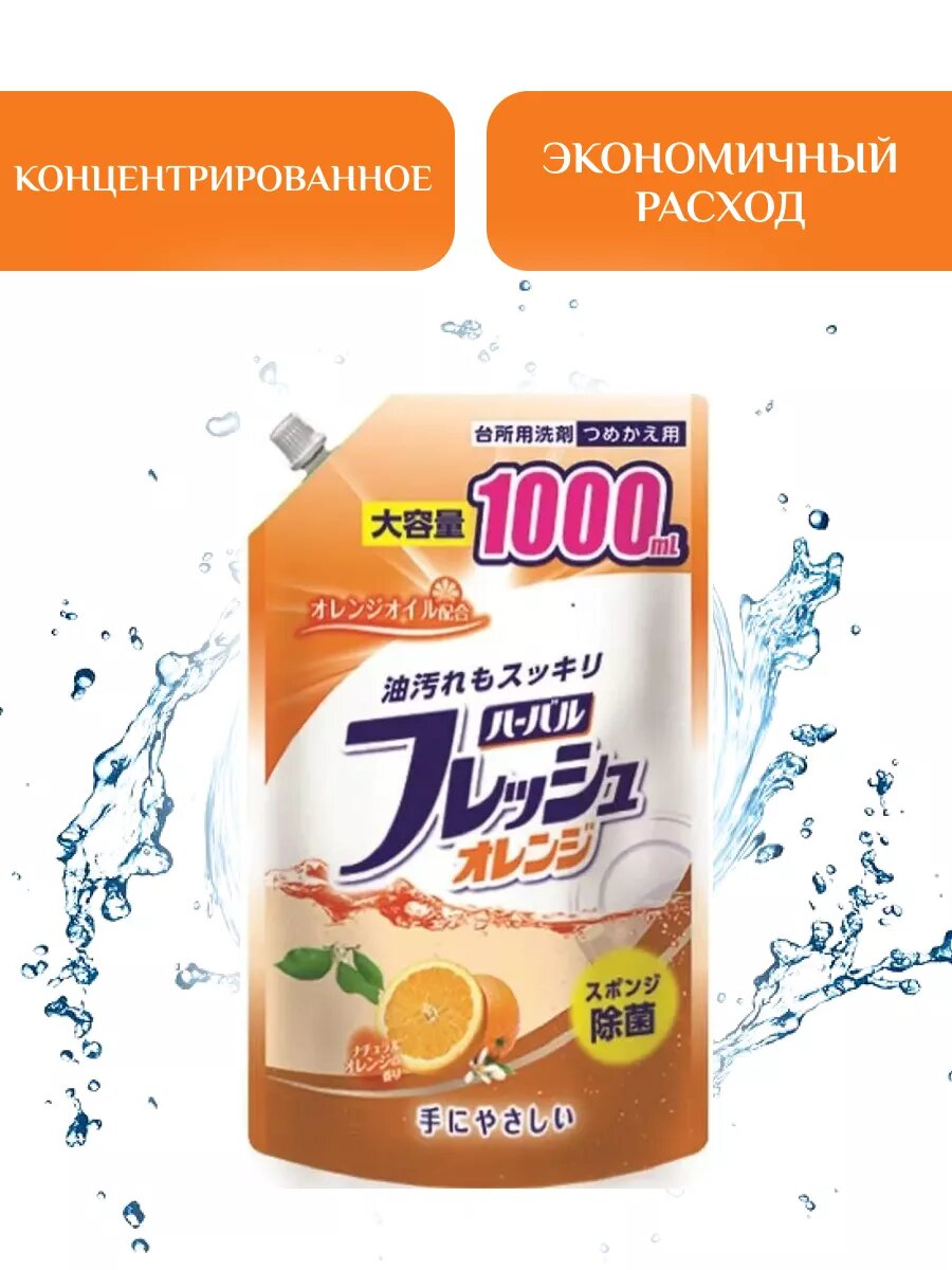 Mitsuei Средство для мытья посуды, фруктов и овощей аромат апельсин сменная упаковка 1000мл