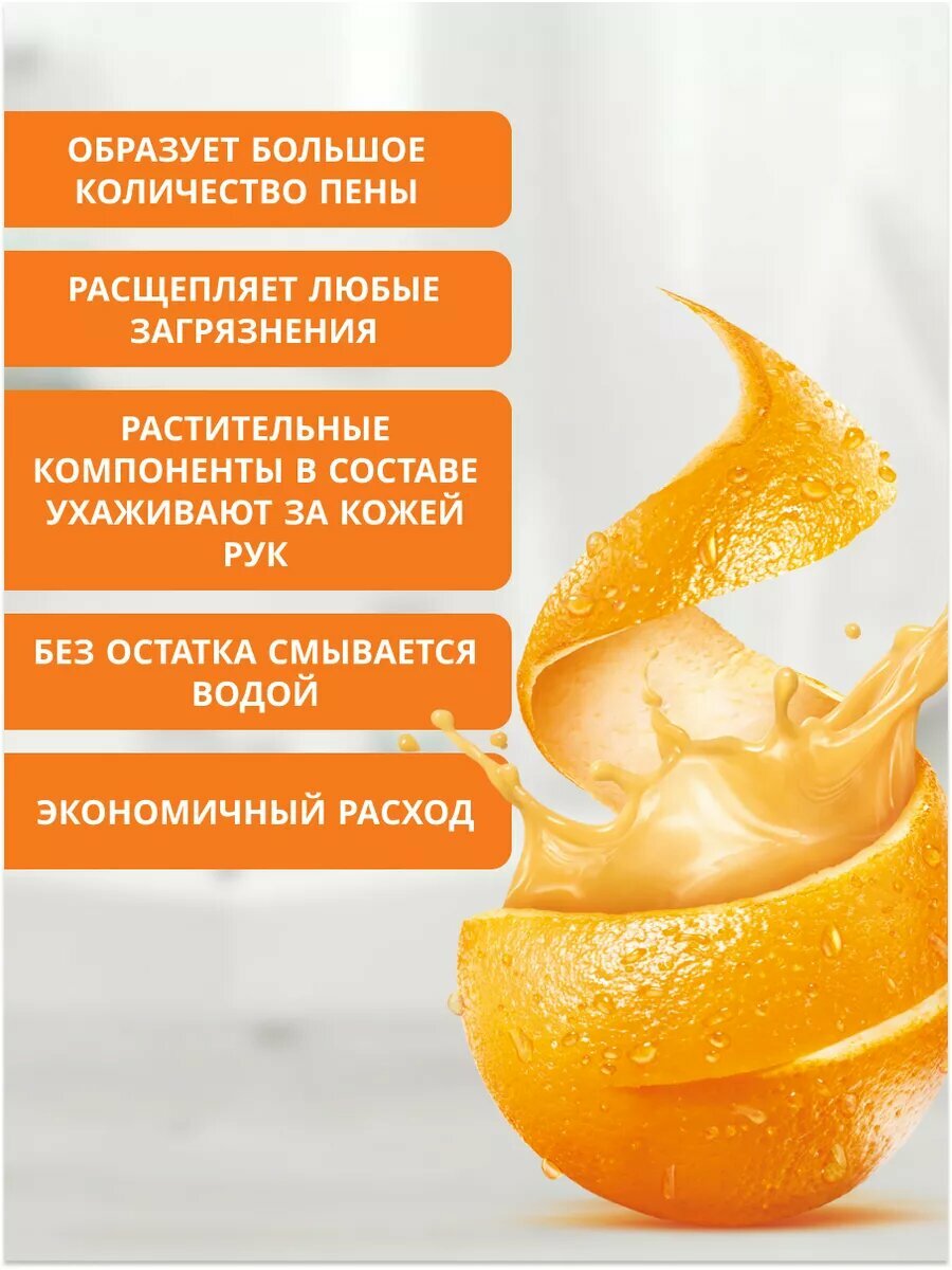 Концентрированное средство для мытья посуды, овощей и фруктов с ароматом апельсина 270 мл