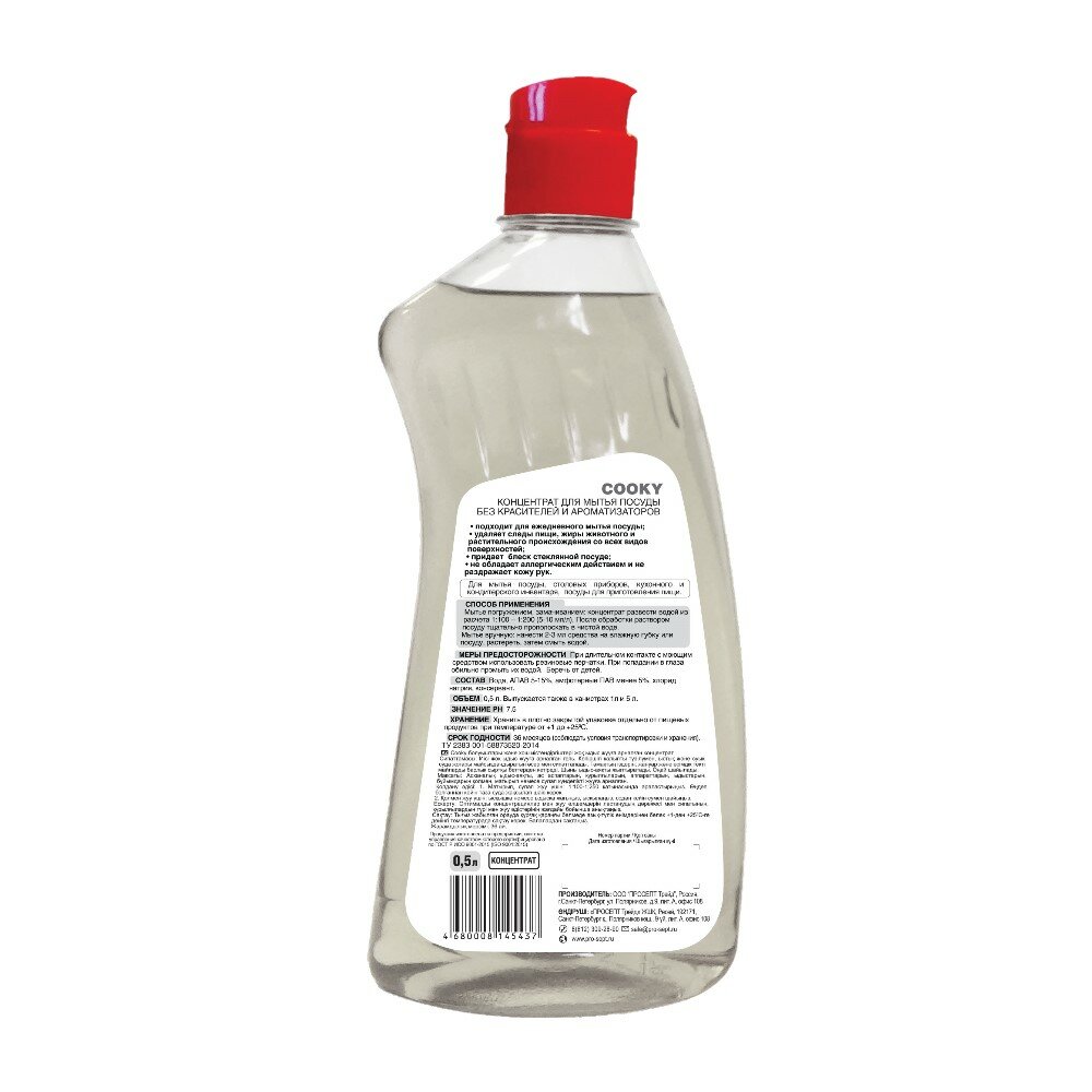 Купить PROSEPT Гель для мытья посуды Cooky без цвета и запаха, 0.5 л
