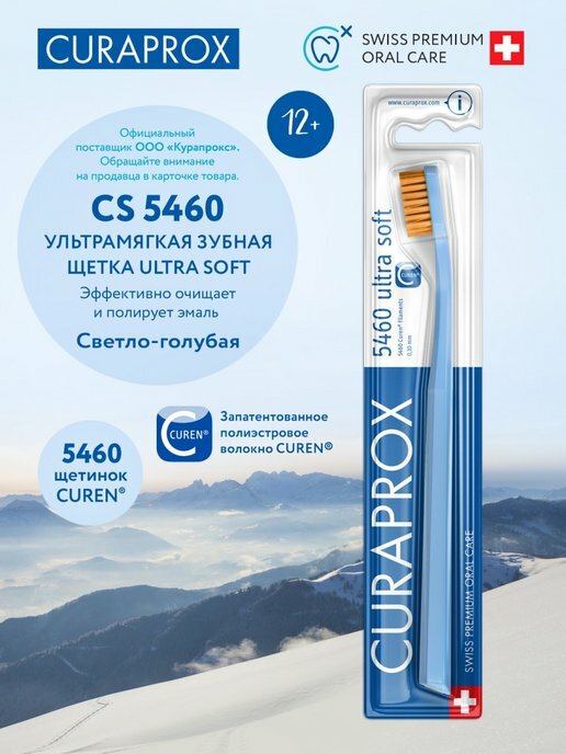 Зубная щетка Curaprox CS 5460 Ultra Soft, светло-голубой, диаметр щетинок 0.1 мм