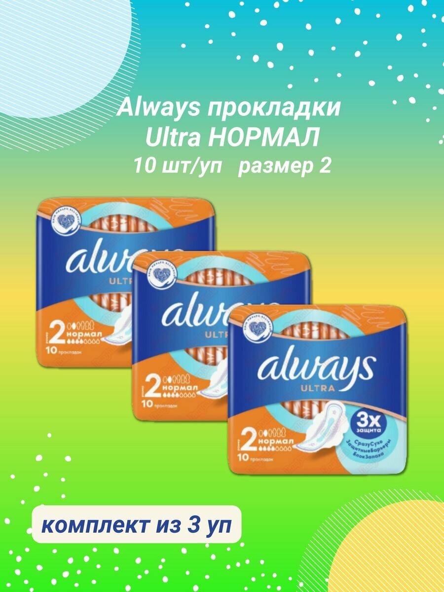 Always Женские гигиенические прокладки с крылышками Ultra Нормал размер 2 10 шт. - 3 шт
