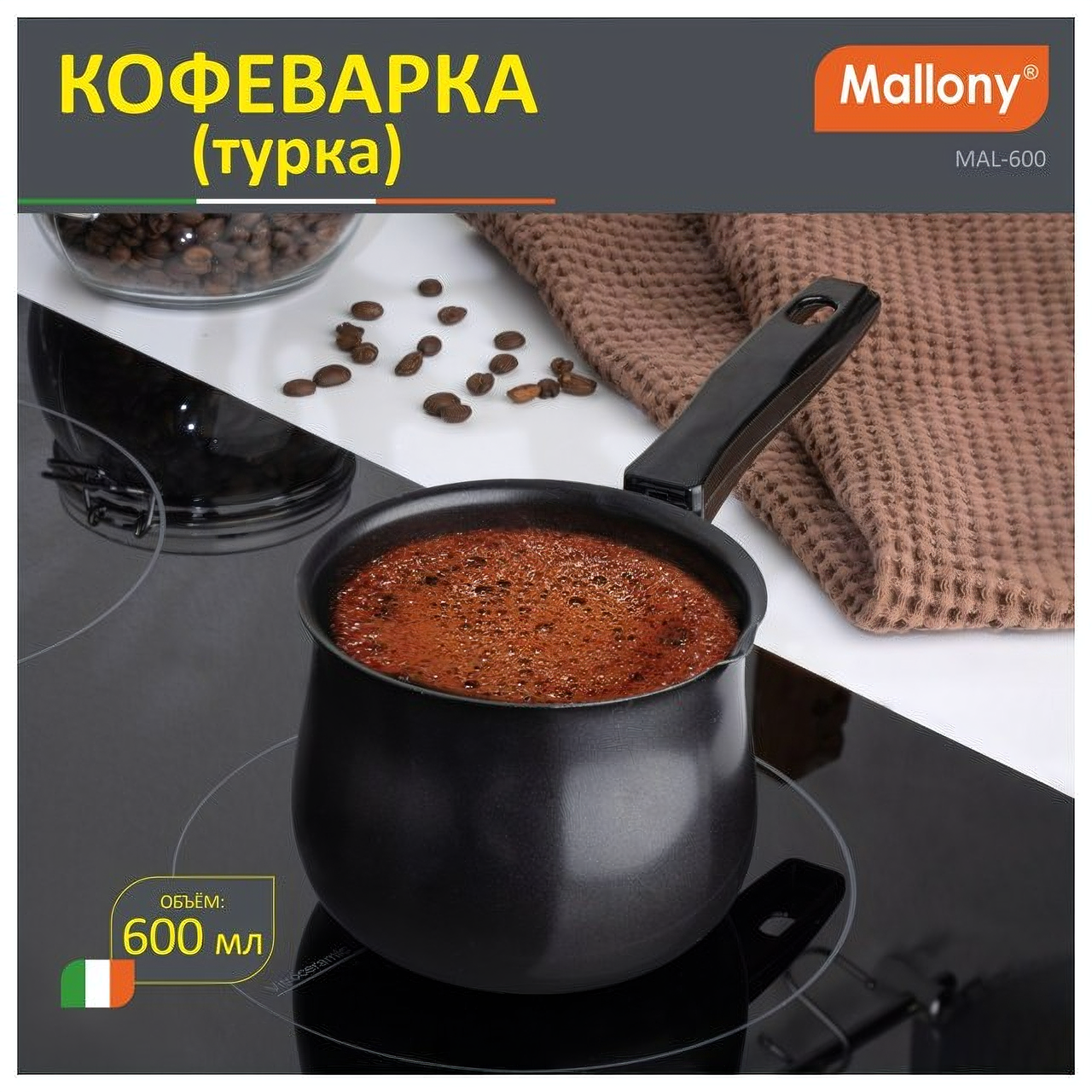 Турка Mallony MAL-600, 600 мл, черный