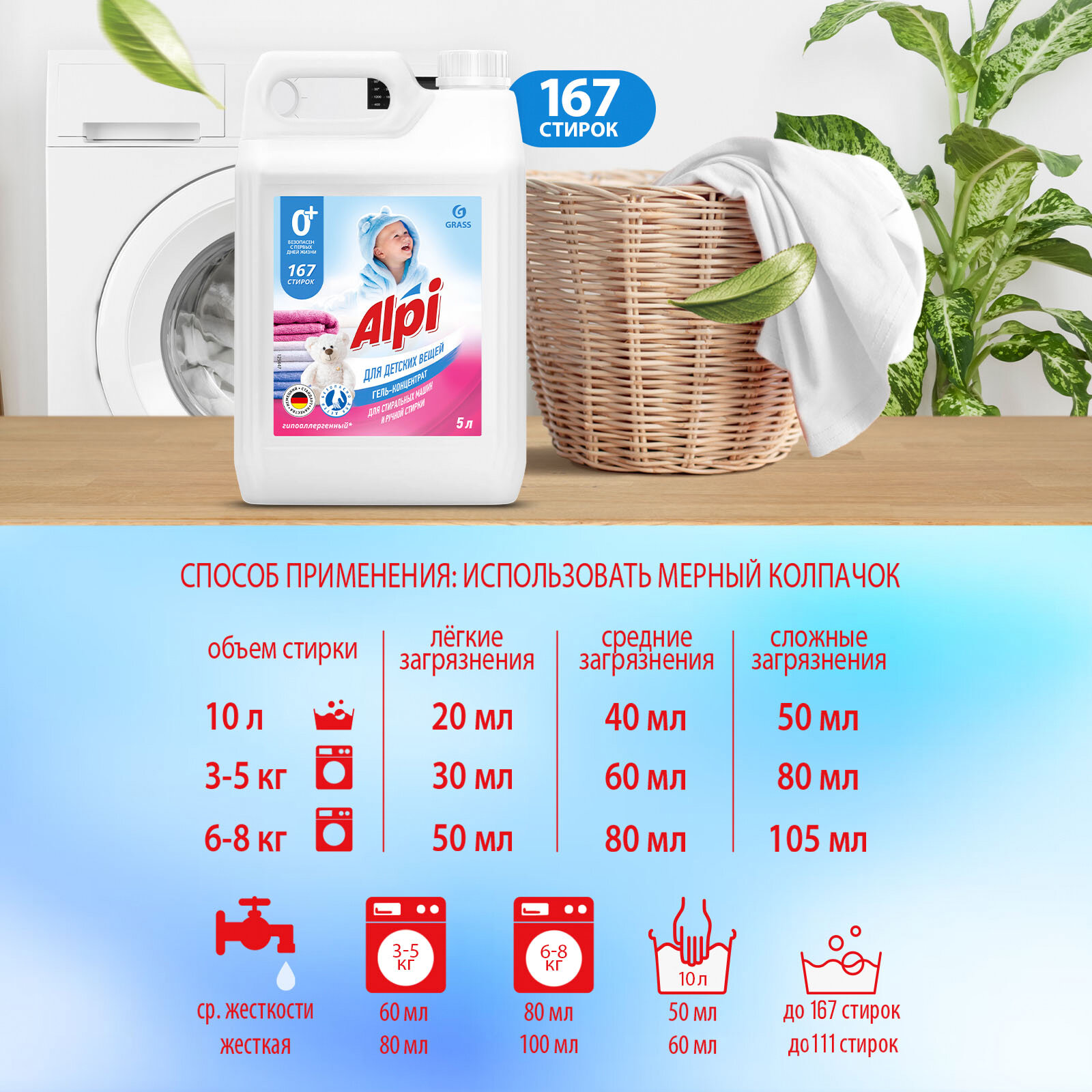 Гель для стирки Grass Alpi для детских вещей, 5 л, 5 кг