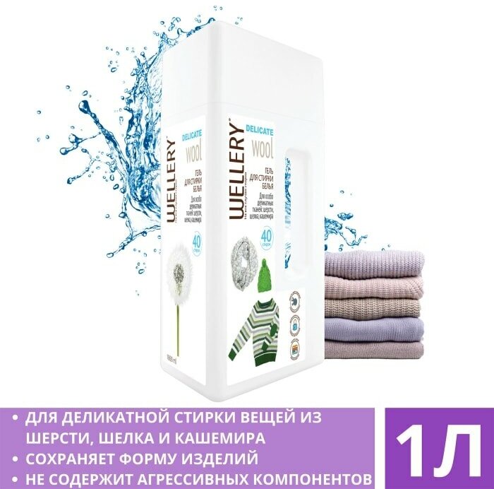 Гель для стирки Wellery DELICATE WOOL для деликатной стирки шерсти, шелка и кашемира, 1 л