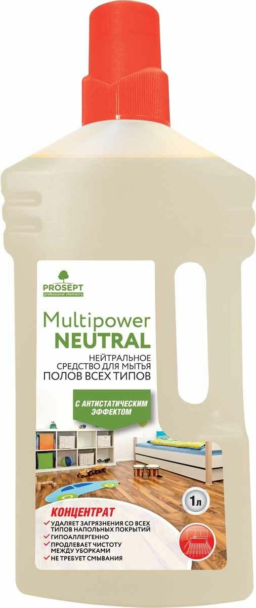 Средство для мытья полов универсальное с антистатическим эффектом Prosept Multipower Neutral, 1 л