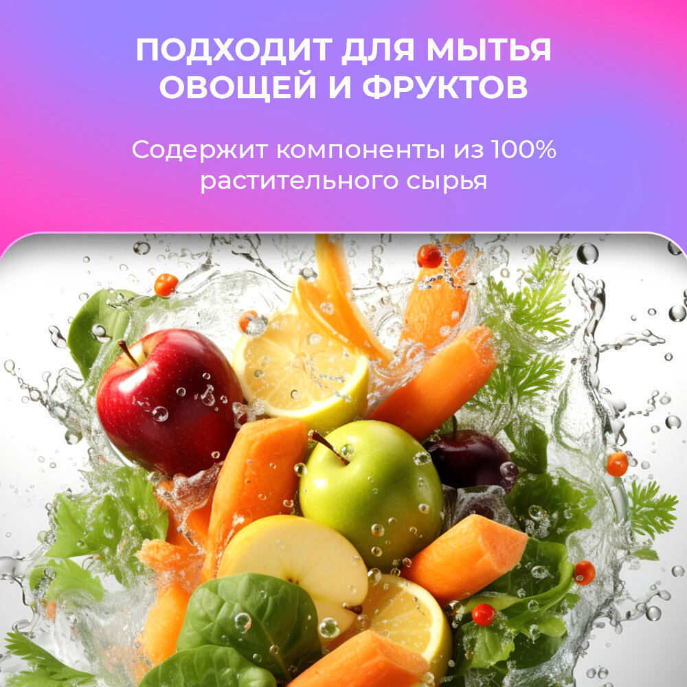 Хорошо ополаскивается Не оставляет запаха на посуде Тарелки хрустят от чистоты Биоразлагаемое средство |