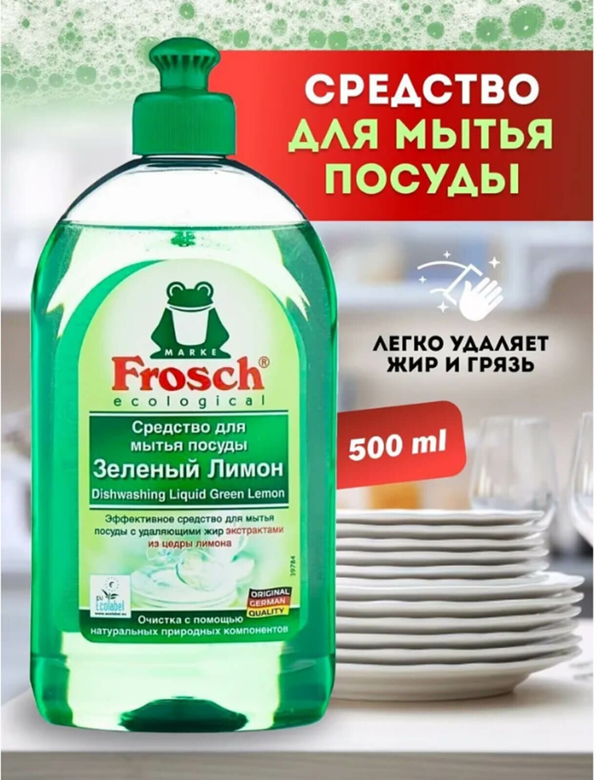Frosch Средство для мытья посуды Зелёный лимон, 0.5 л