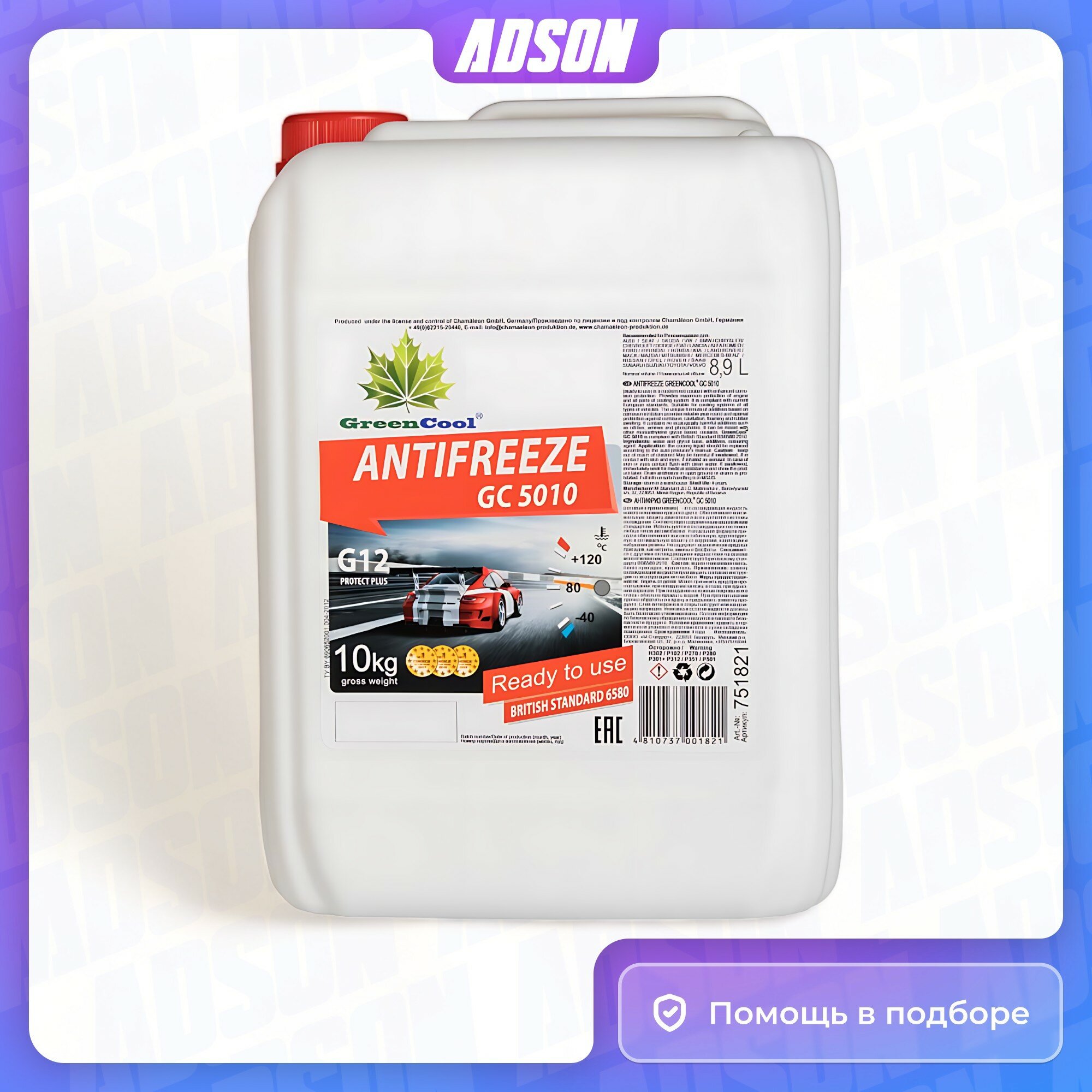 Антифриз 10кг, Gc 5010 Готовый Красный, G12, Bs 6580 GreenCool арт. 751821