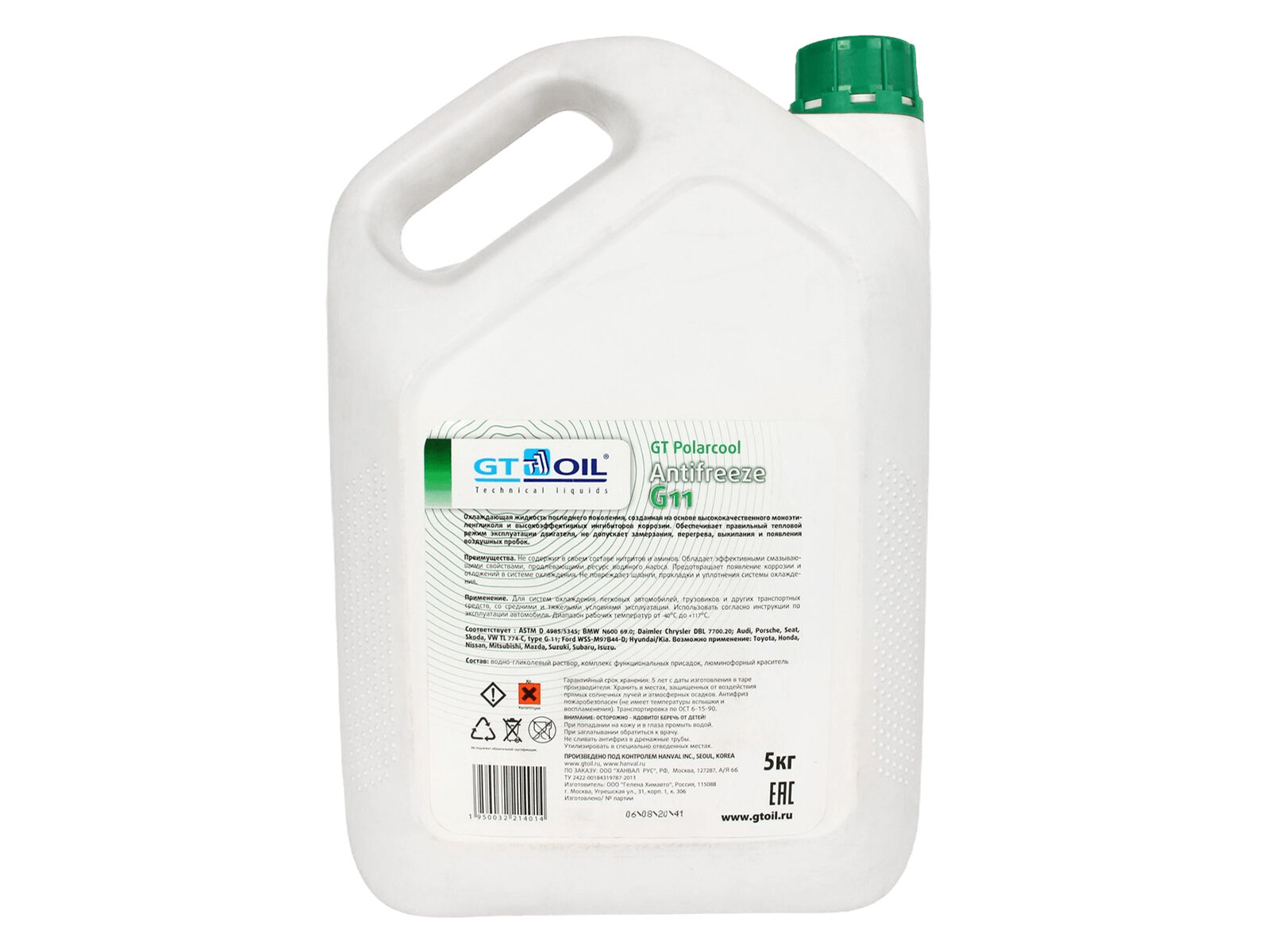 Антифриз gt polarcool g11 зеленый 5 кг gt oil 1950032214014