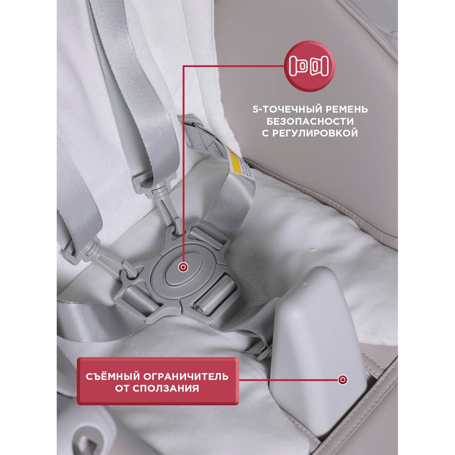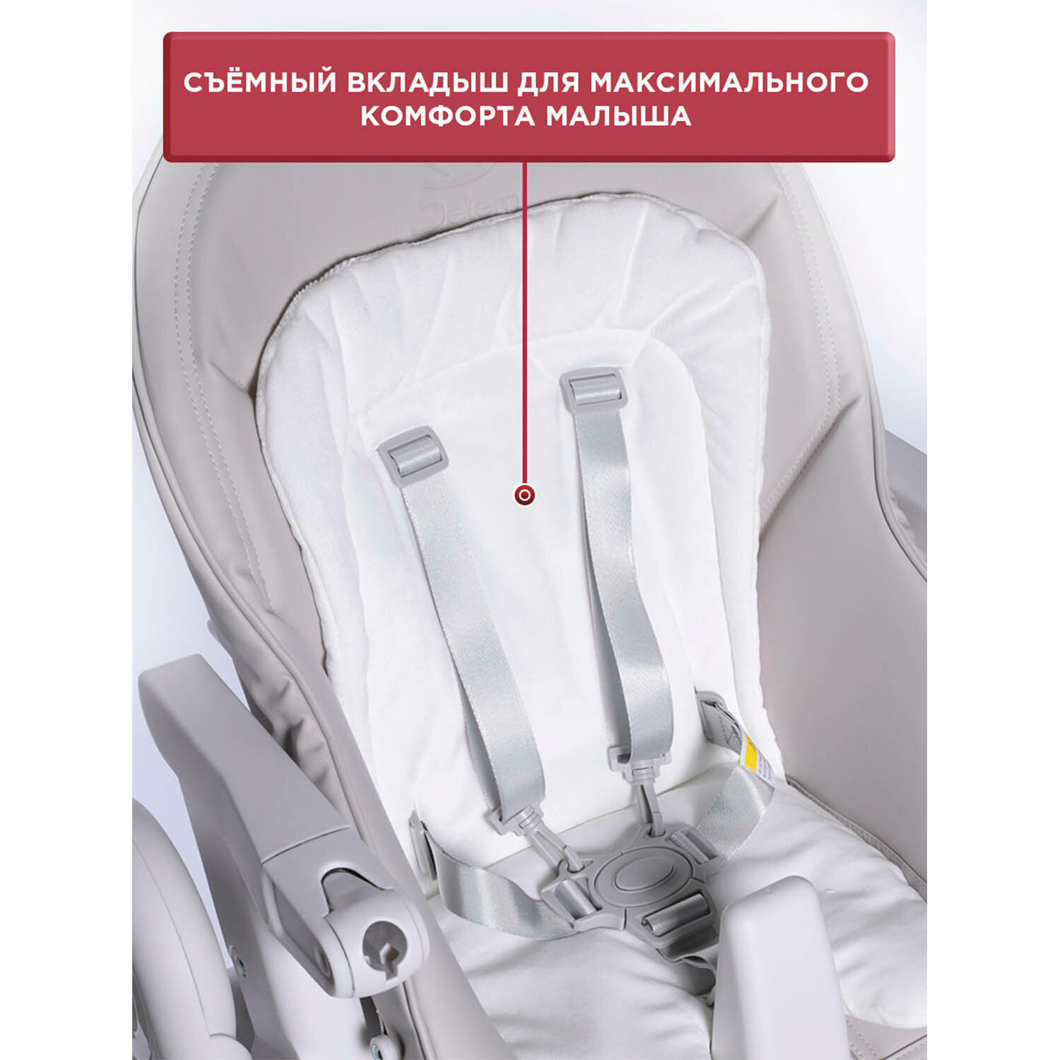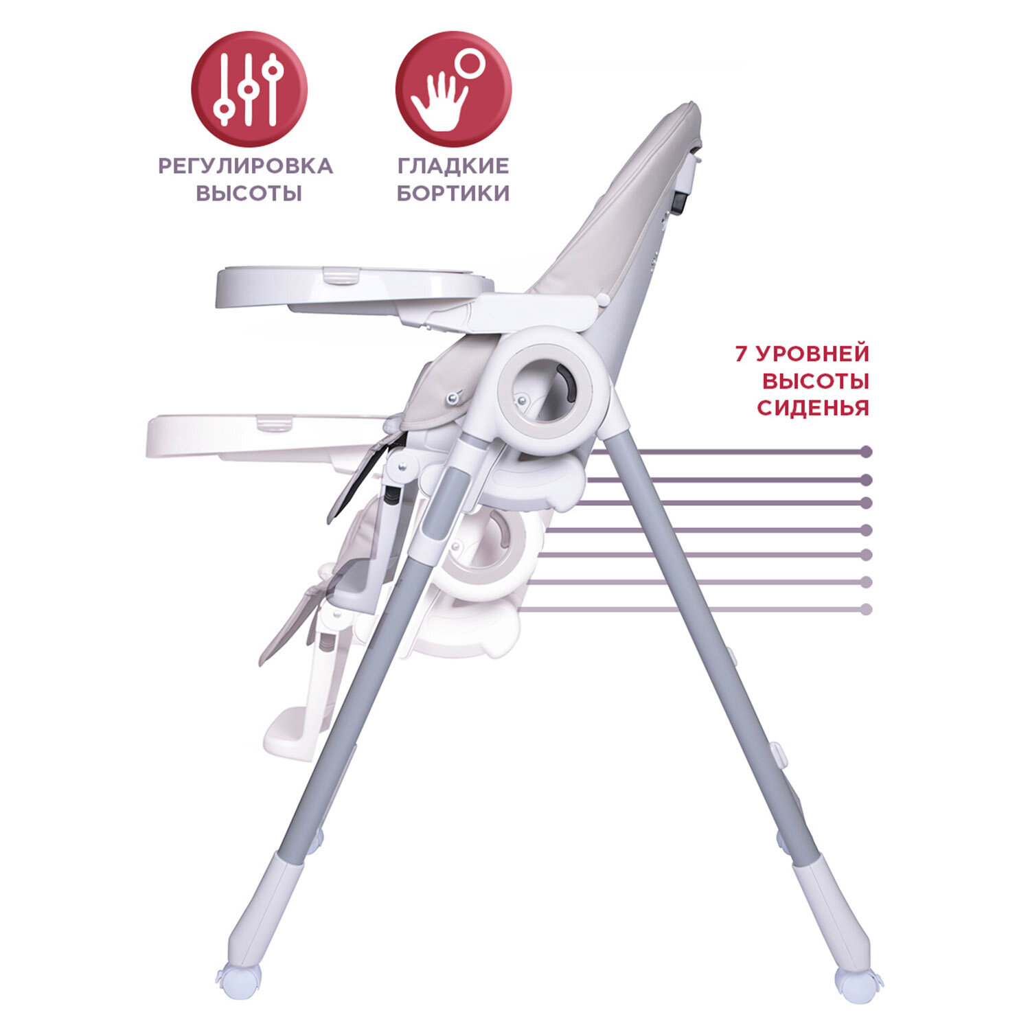 Прекрасный стульчик! Регулируется легко и в разных вариациях. Само сиденье сделано из экокожи. Сидеть мягко и протирать удобно. Дизайн лаконичный. Отлично подходит для нашей новой кухни. Здорово, что цвет однотонный, а не аляпистый. Есть ремни безопасности и разделитель для ножек. Так что даже самый резвый малыш вряд ли оттуда выберется).