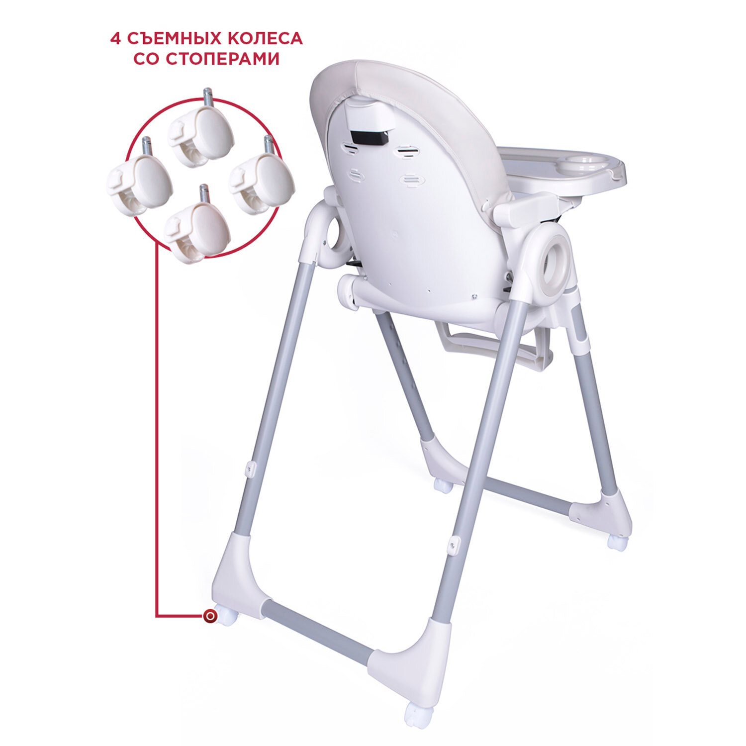 Начали прикармливать сына с 5 месяцев, тогда он еще не сидел. Поэтому нужен был стульчик с откидывающейся спинкой. Остановили выбор на Jetem Violino. У нас он темно-серый, очень приятный на вид, за экокожей легко ухаживать, чистится салфеткой, поднос съемный. Стул легкий, двигается легко, но передние ножки без колес, поэтому стоит крепко. В общем в эксплуатации ведет себя отлично, родители и ребенок довольны)