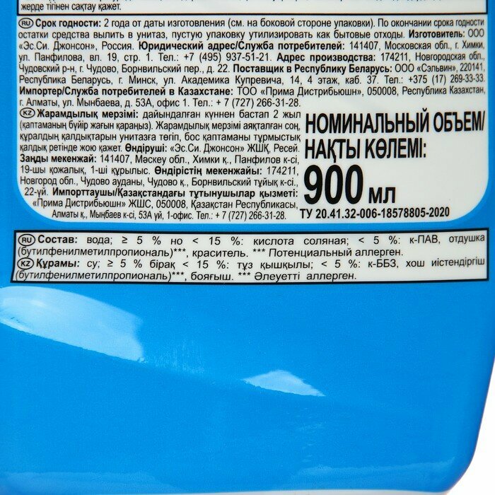 Чистящее средство для унитаза SC Johnson Туалетный утенок, "Морской", 5 в 1, 500 мл (696891/338586)