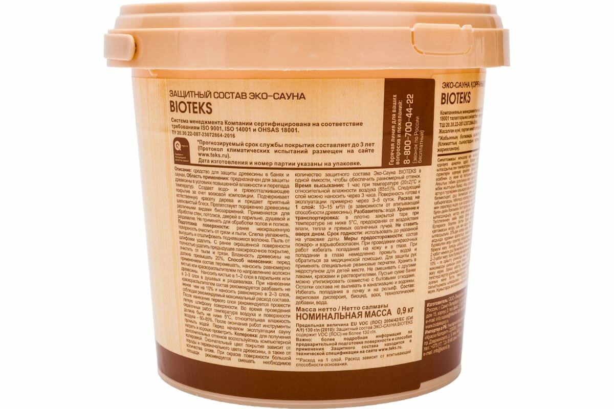 Текс BIOTEKS эко-сауна защитный состав термостойкий, водорастворимый, полуматовый (0,9л)