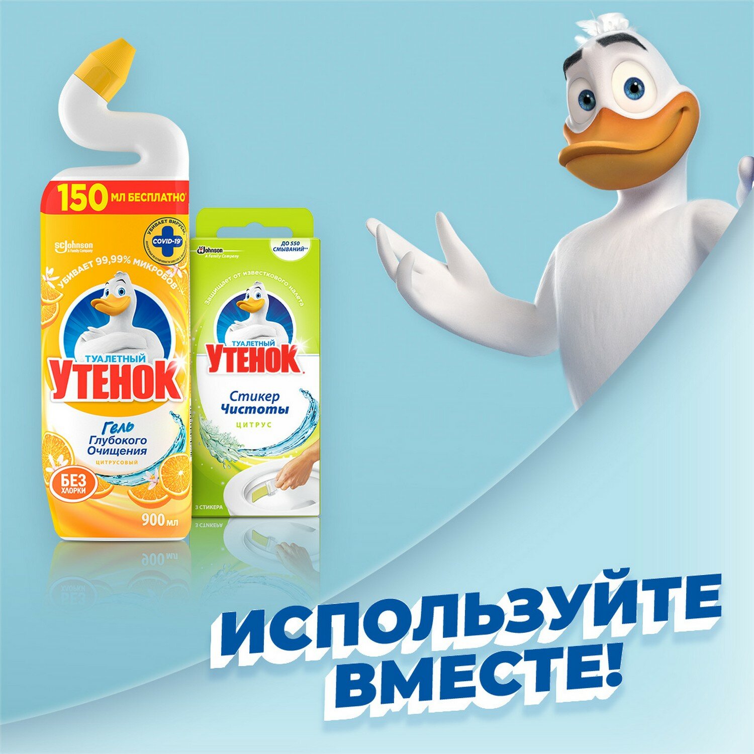 SC J туалетный утёнок активный Чистящ.ср-во для унитаза цитрус 5в1, 900мл
