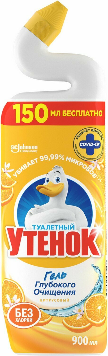 Туалетный Утенок Чистящее средство для унитаза Цитрусовый, гель глубокого очищения, 900 мл