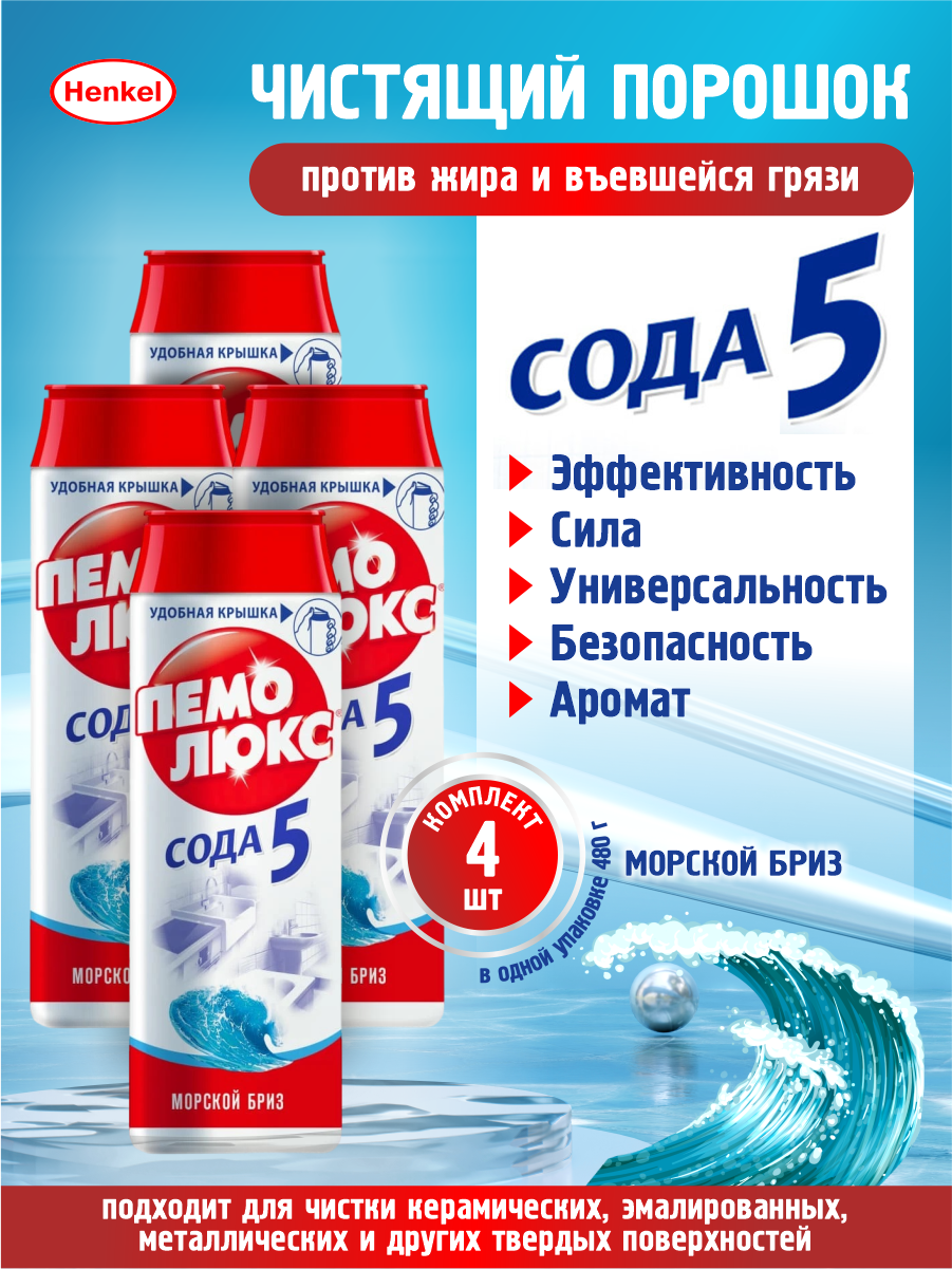 Средство чистящее пемолюкс порошок (флак 480г) Сода 5 Морской бриз, 2 шт.