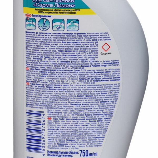 Ниже Вы можете прочитать отзывы на SARMA Средство для сантехники "Лимон", 750 мл., ознакомится с подробными характеристиками, посмотреть интересные обзоры и фотографии на SARMA Средство для сантехники "Лимон", 750 мл..