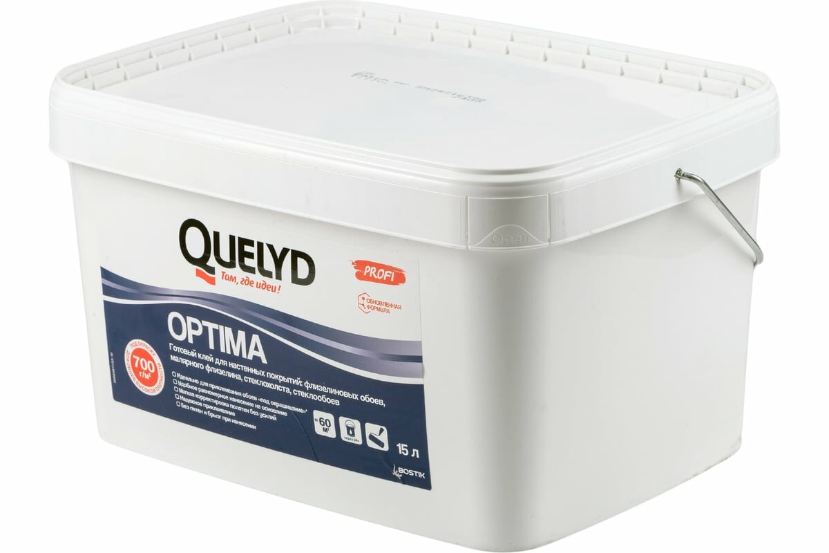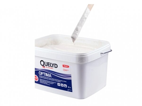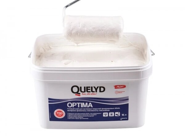 Готовый клей для стеклохолста и флизелиновых обоев Quelyd Optima, 15 литров