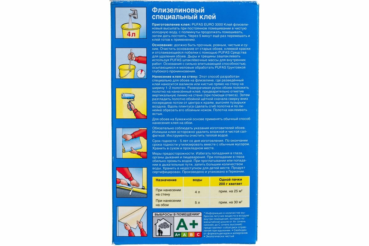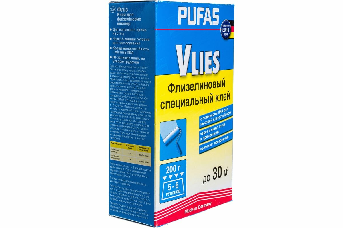 Пуфас 522 клей для флизелиновых обоев (0,2кг) / PUFAS N0522 Vlies Kleber Euro 3000 клей обойный флизелиновый (200г)