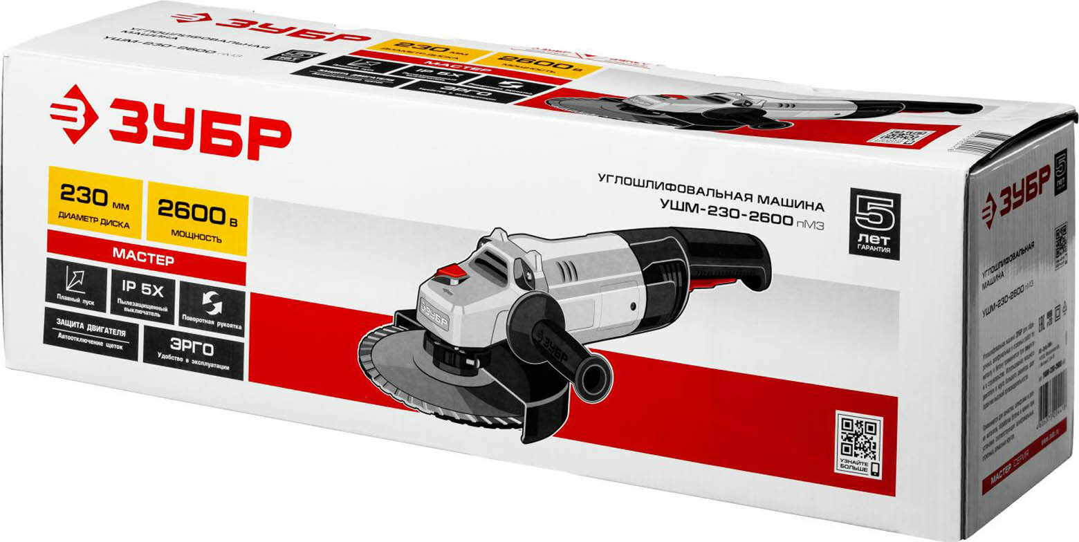 Угловая шлифмашина ЗУБР УШМ-230-2600 ПМ3 интересное: