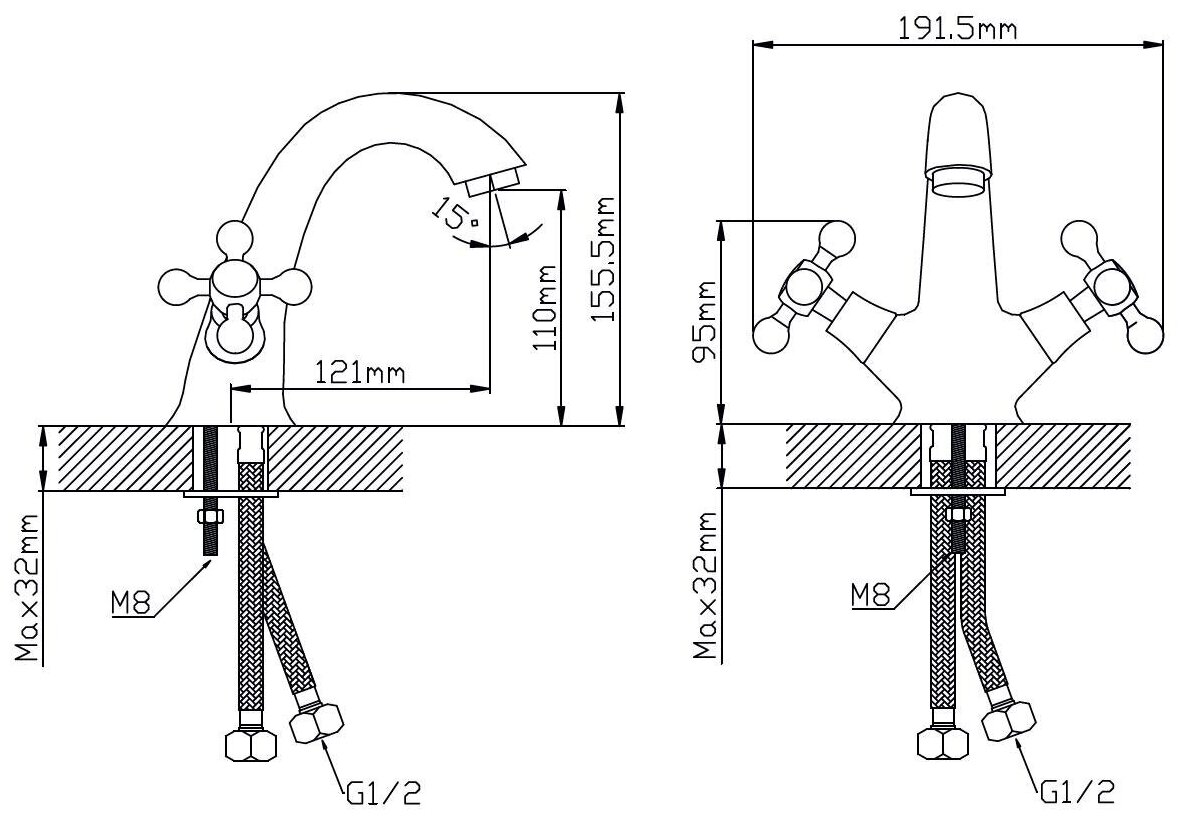 Смеситель на раковину Potato P1061 керамическая кран-букса, хром, крепление шпилька