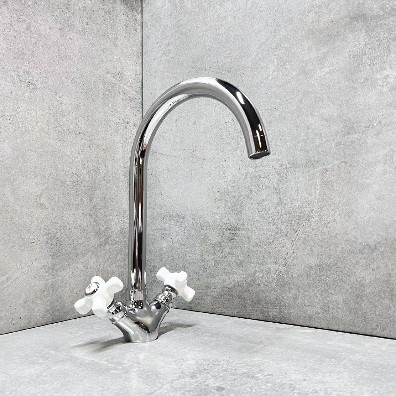 Смеситель для кухни с керамическими ручками и поворотным изливом Haiba HB4118, хром